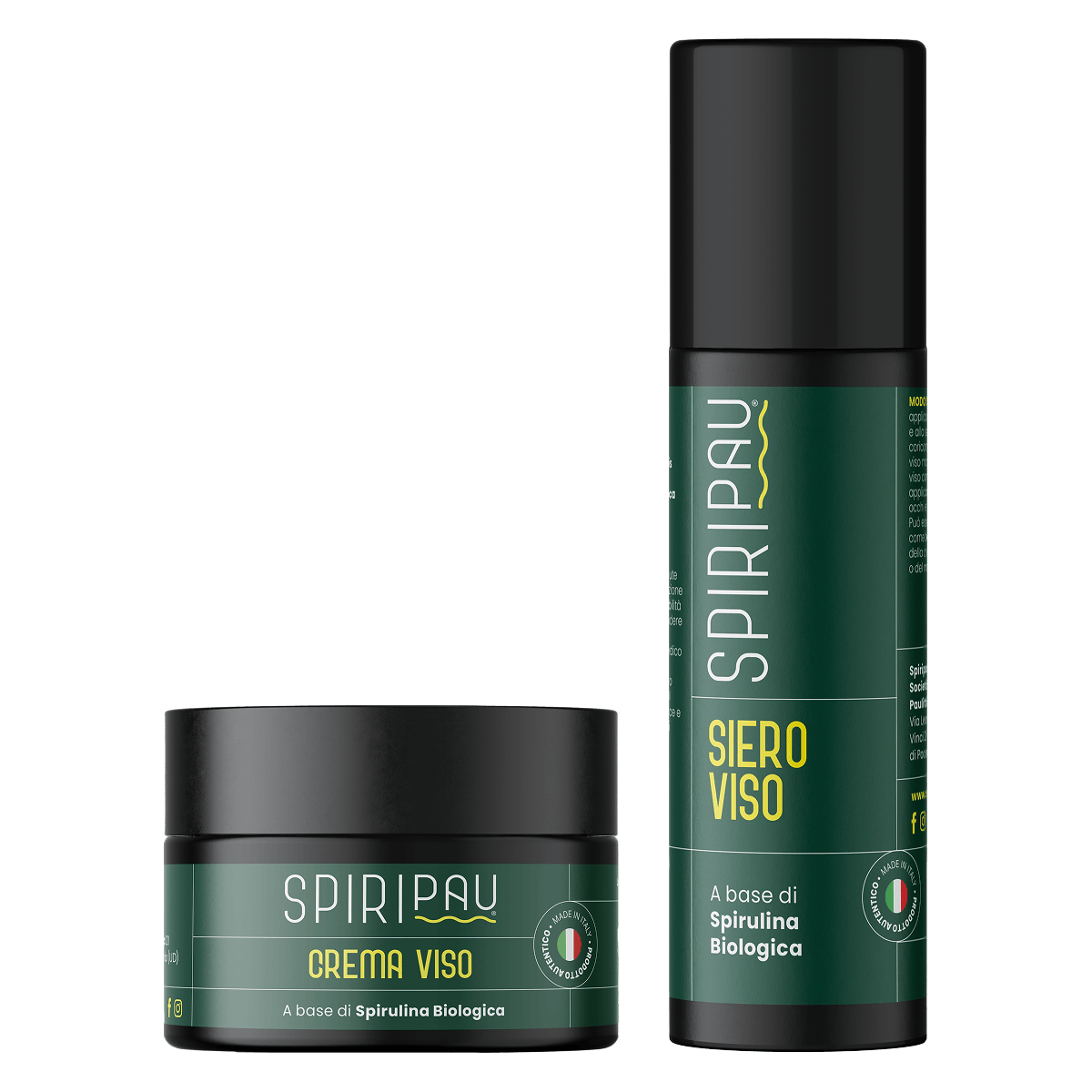 Il nostro bundle viso antiage combina due potenti alleati per la cura quotidiana della pelle, pensati per offrire idratazione, nutrimento e protezione. Formulato con Spirulina Bio Italiana Spiripau, questo set rigenera e illumina la pelle grazie all’azione combinata di ingredienti naturali e funzionali.