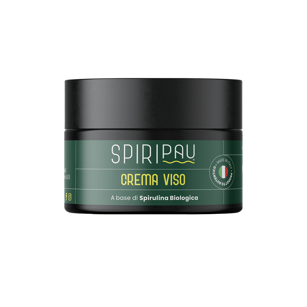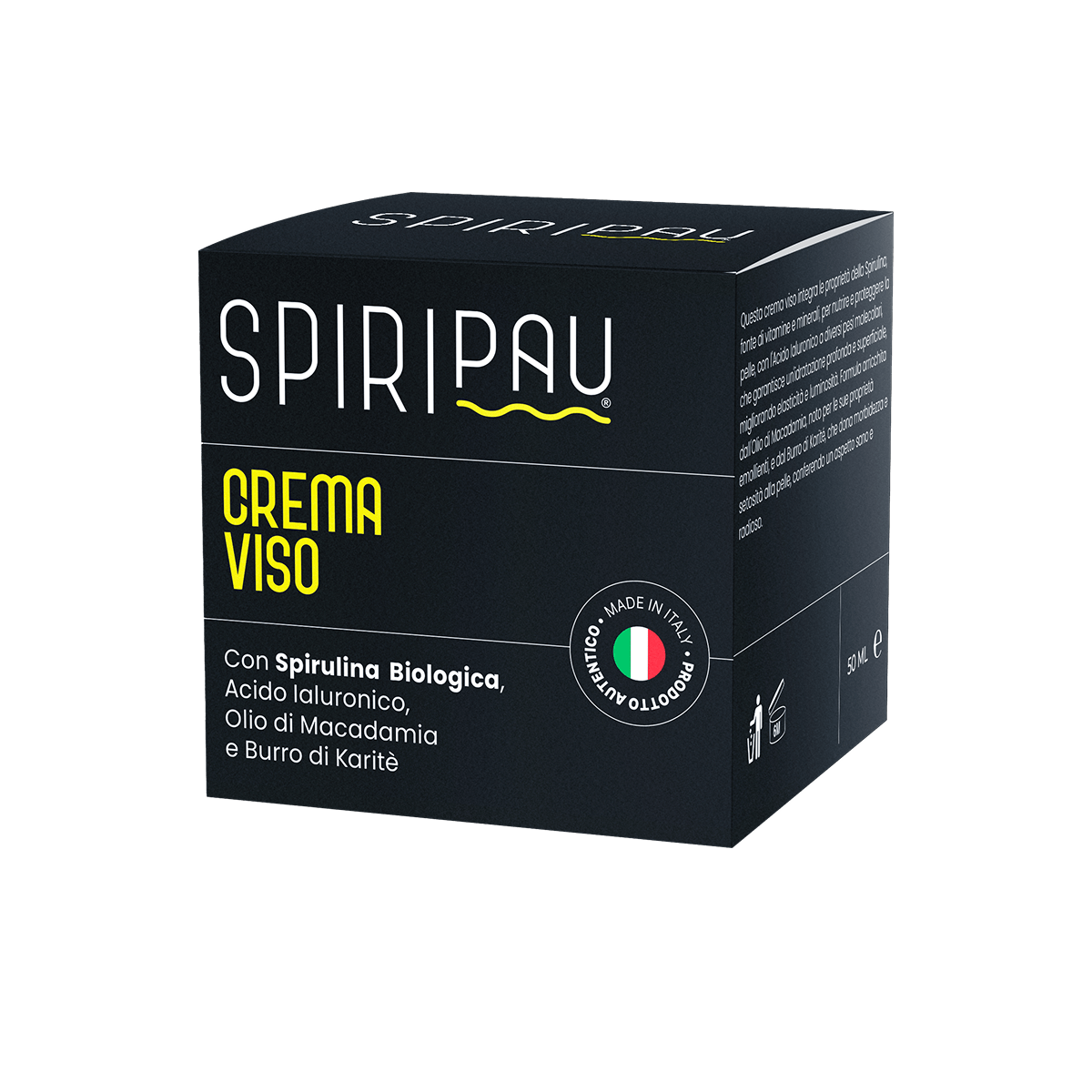 Innovativa crema viso antiage con Spirulina Bio, Acido Ialuronico, Olio di Macadamia e Burro di Karité.