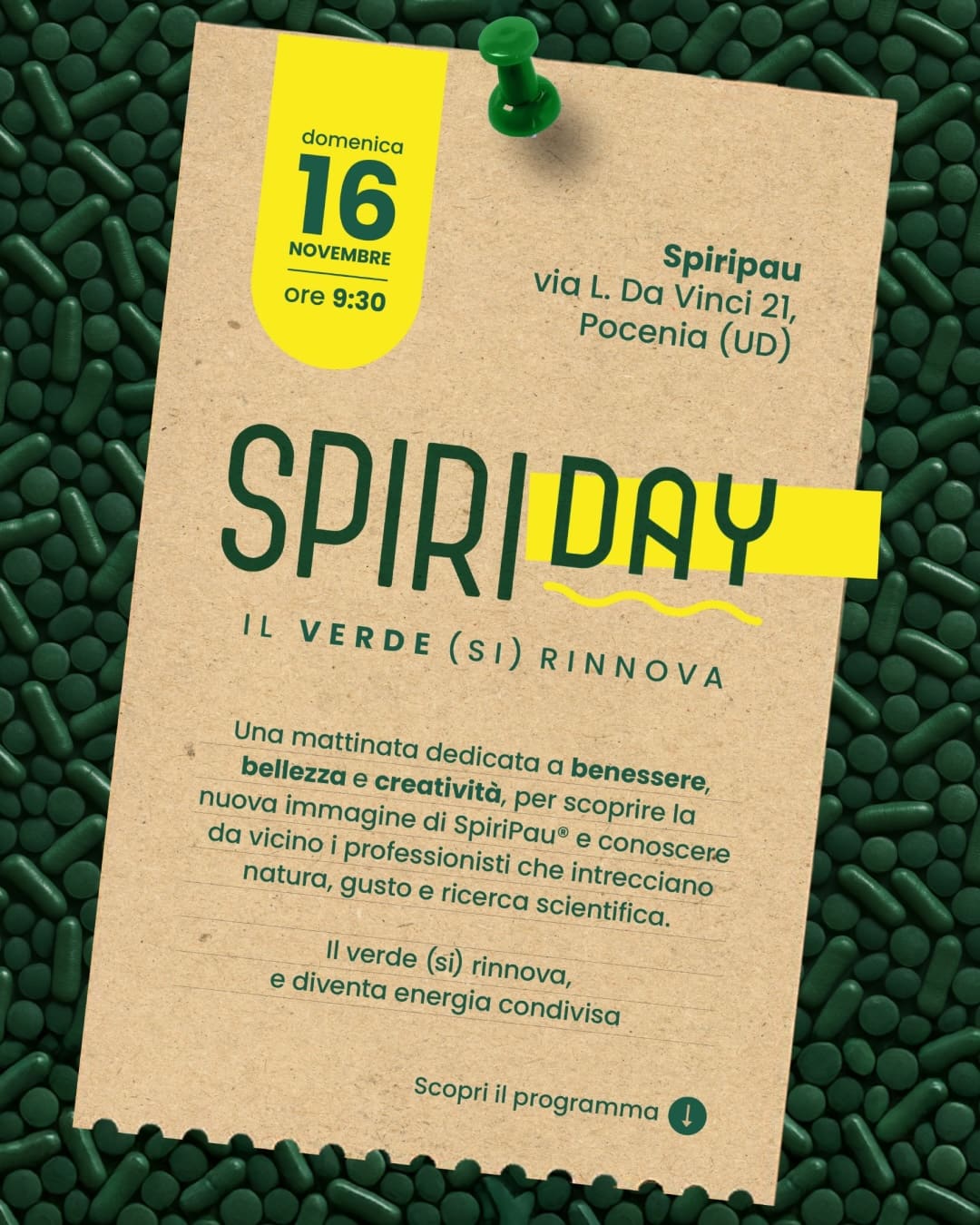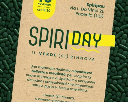 Durante l’evento verranno presentati il processo di produzione della spirulina biologica Spiripau, il progetto di rebranding e la linea cosmeceutica nata dalla collaborazione con i Laboratori Fitoterapici.